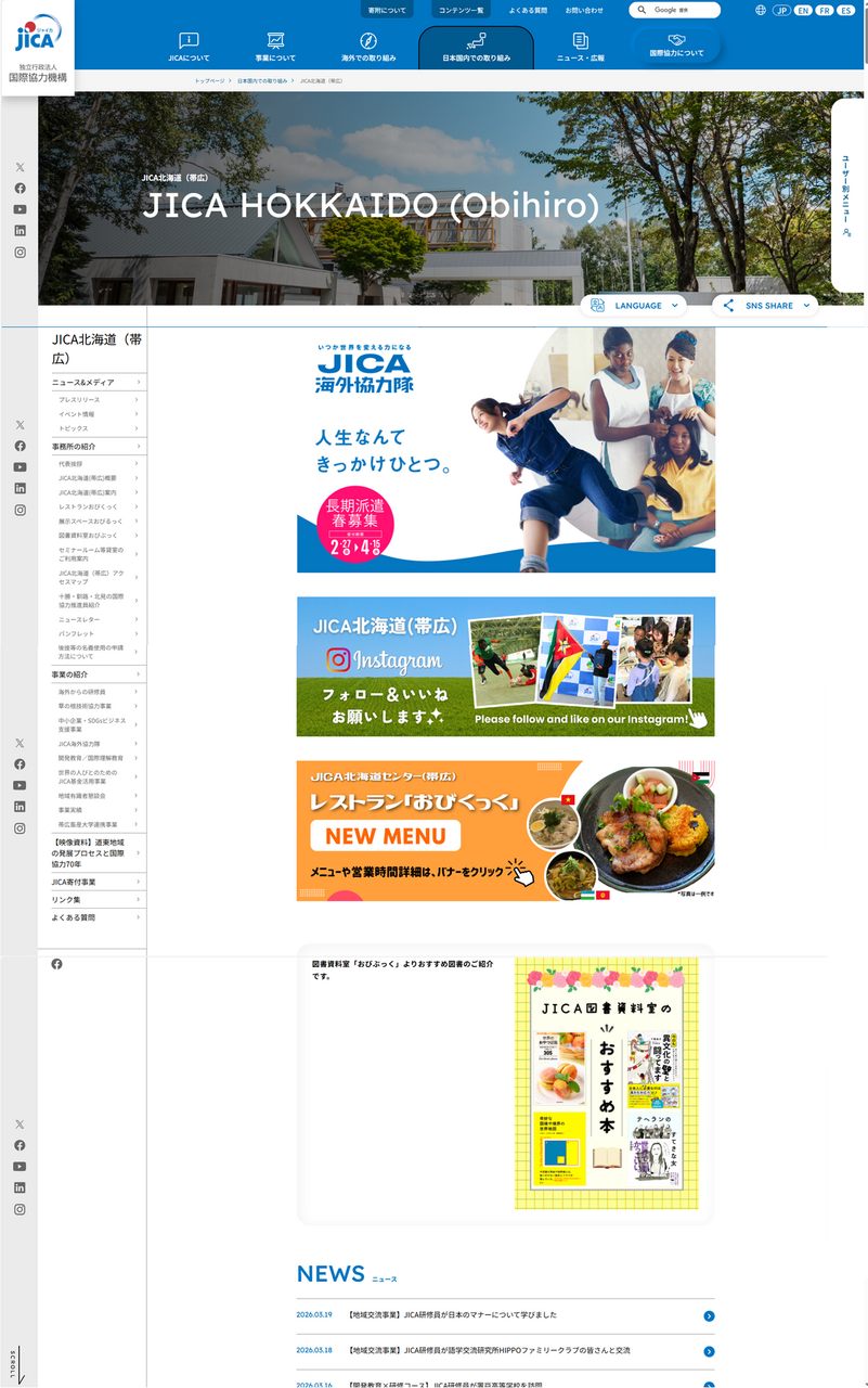 JICA Hokkaido (Obihiro) HP: https://www.jica.go.jp/domestic/obihiro/index.html